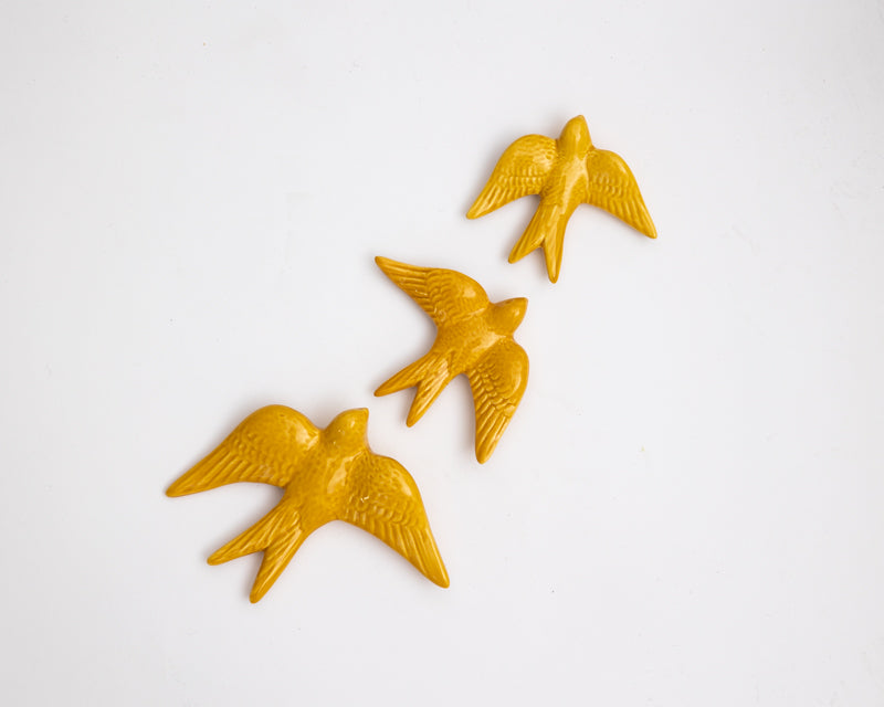 3 Golondrinas de cerámica - mostaza