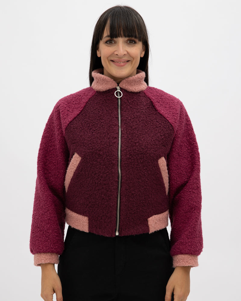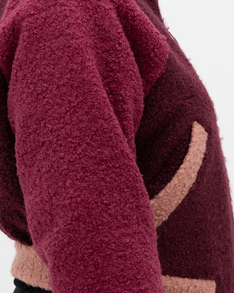 Cazadora tipo bomber o beisbolera de toda la vida pero en peluchito astracán. Es decir, tu nueva chaqueta favorita que nadie más tiene pero todos querrán acariciar.