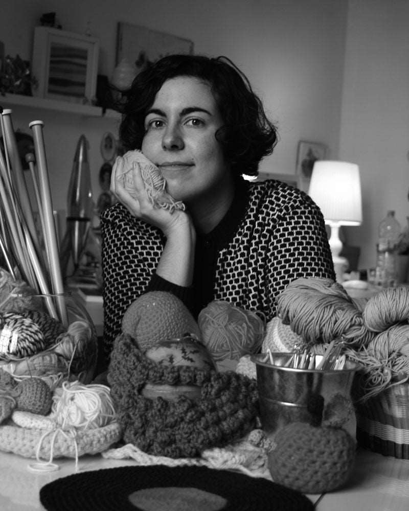 Calcetines azul celeste con ovillos multicolores de lana. Diseñados por Duduá en exclusiva para peSeta para #10deditos, nuestra colección contínua de calcetines diseñados por artistas. Duduá es una institución del DIY y las labores creativas más libres y cuidadas; nuestra admiración por ellas es tanta como nuestro amor. Éste es su primer diseño para calcetines.